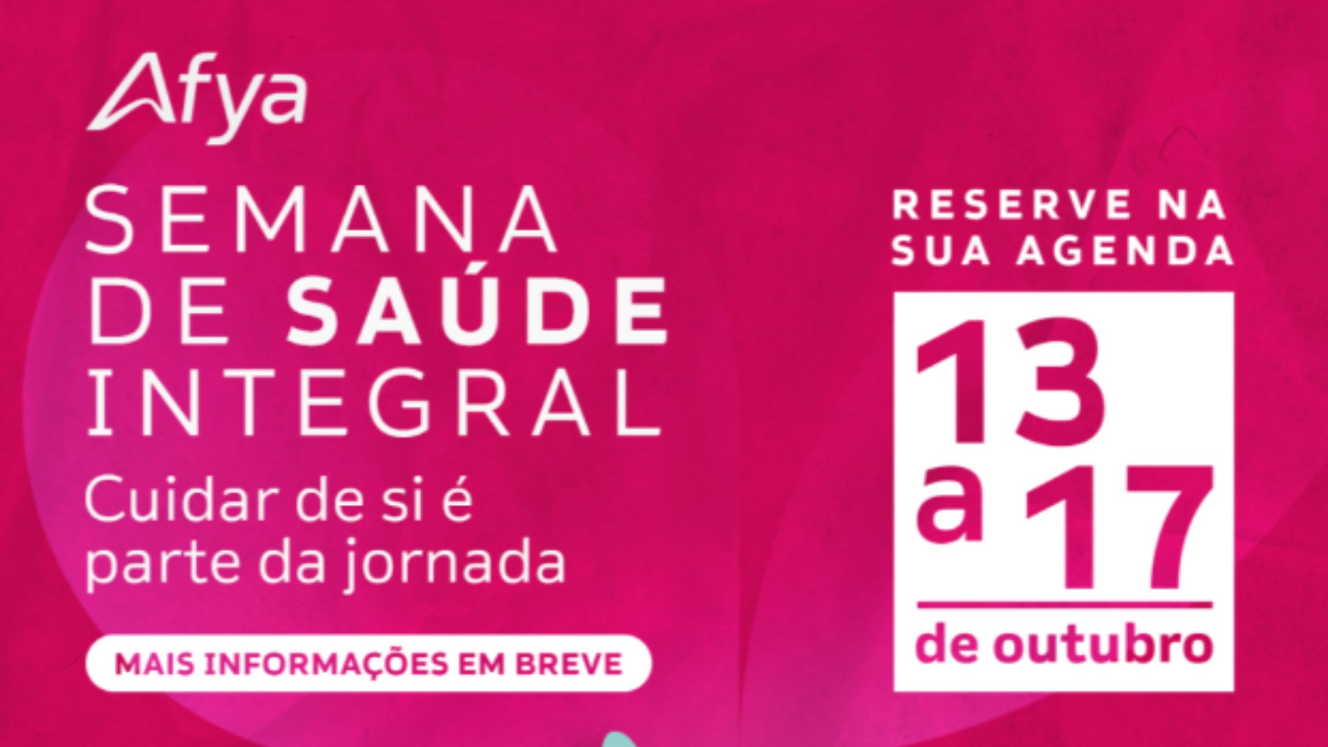 Semana da Saúde Integral Afya: evento online e gratuito oferece palestras e workshops para priorizar seu bem-estar.